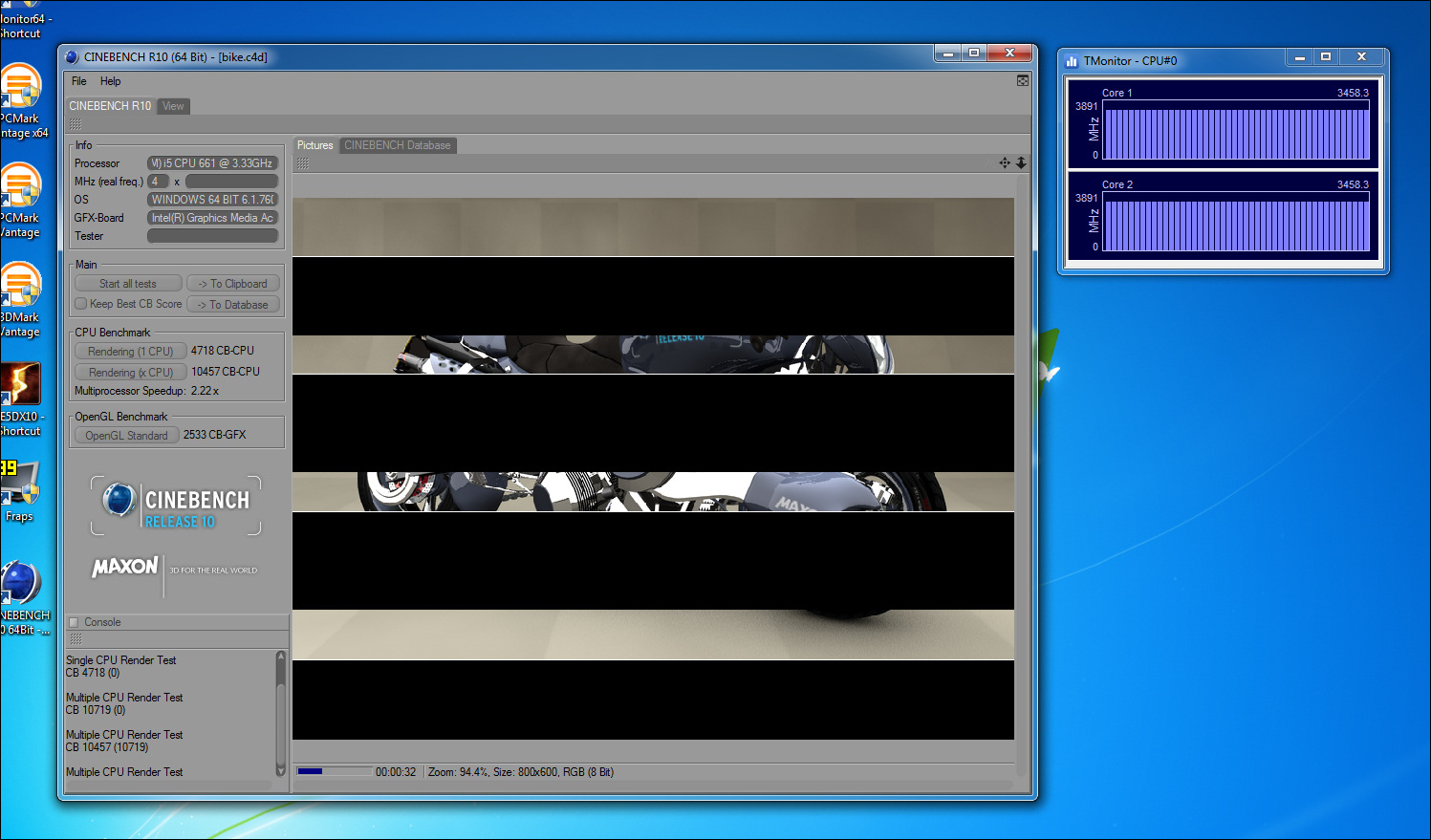 Aquí vemos como el modo Turboboost se activa incluso cuando sometemos a carga total a los cuatro Threads del procesador. En este caso aumenta hasta los 3.5GHz como vemos mediante Tmonitor.Rendimiento Suites. PCMark y 3DMark Vantage, Windows Experience Index