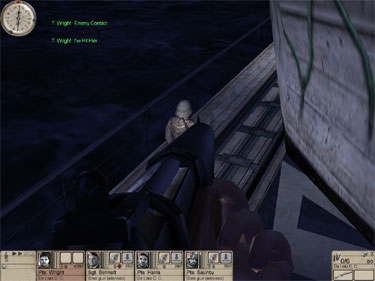 Una vez colocadas, subiremos con el soldado que tenga la el arma silenciada al barco más pequeño. Para ello se utiliza la escalera en el lado opuesto al destructor. Dentro del barco hay que tener cuidado para que los enemigos no adviertan nuestra presencia y den la alarma.