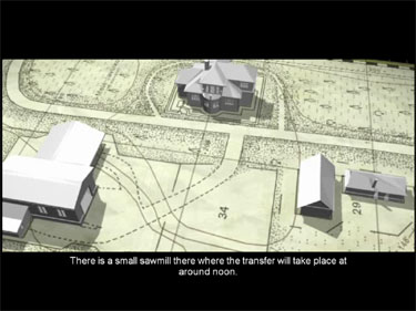 En una de las cabañas más próximas al puente se encuentran unos documentos sobre una mesa, los recogemos y echamos un vistazo a las cajas que hay en el centro de los edificios. Dos nuevos objetivos están cumplidos.