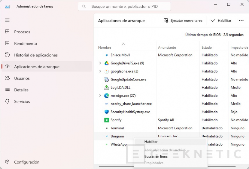La configuración de Windows 11 te ofrece la posibilidad de controlar las aplicaciones de inicio. Lo cierto es que la mecánica de esta herramienta es idéntica a la del Administrador de tareas.