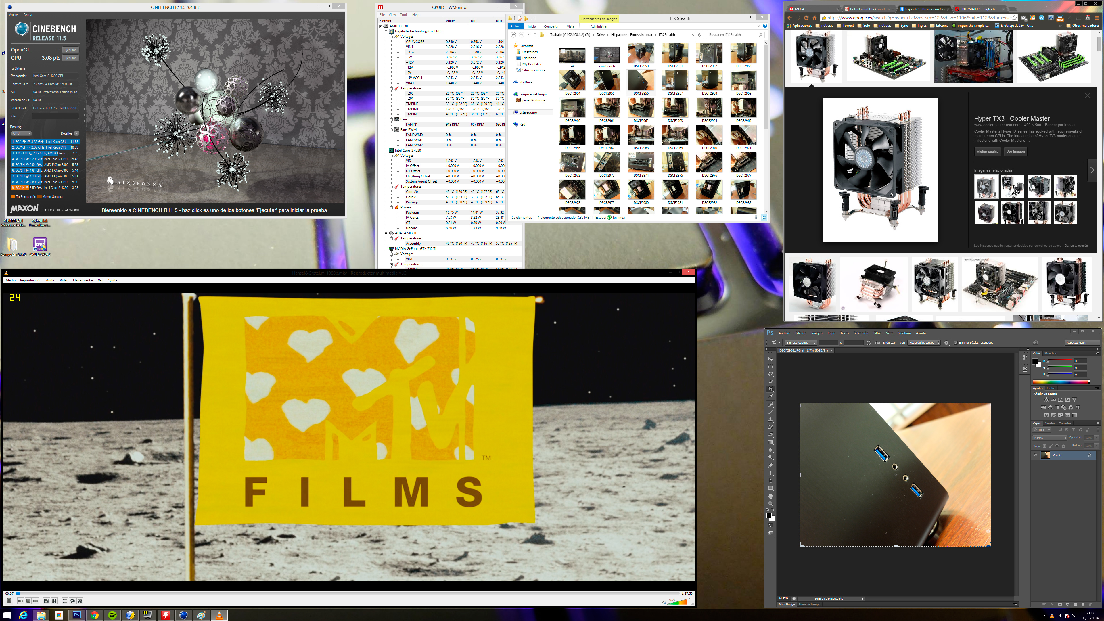 Nosotros hemos optado por un Core i3-4330 a una frecuencia de hasta 3.5GHz. Es un procesador de 54w de consumo TDP con buena respuesta y que permitirá a nuestra gráfica dedicada desarrollarse con un rendimiento adecuado para muchos juegos actuales. Reduciendo el consumo de la CPU podemos limitar la necesidad de ventiladores, así hemos hecho nosotros, eliminándolos incluso completamente. Nosotros mantenemos la estabilidad de nuestro sistema con un pequeño ventilador Coolermaster TX3 al que hemos retirado el ventilador activo. Trabajará sin ventilador y es un disipador sencillo de montar, limpiar y colocar.
