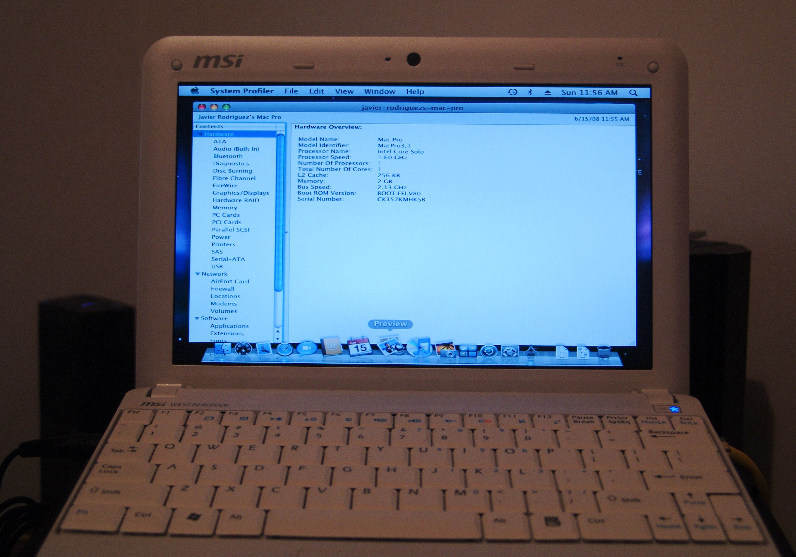 Hace unos quince días, después de nuestro análisis en exclusiva del MSI Wind, este humilde redactor publico anónimamente unas capturas con unas pruebas de MacOS Leopard instalado sobre el MSI Wind.