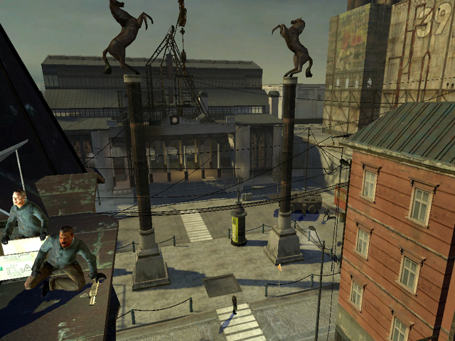 Haciendo un pequeño resumen de lo que ahí se analiza partamos de que el argumento de la segunda parte aunque todavía no se sabe con certeza pero se especula que si que trabajaremos con el famoso G-man, trabajaremos a su servicio en un ciudad que la han llamado "City 17". Una ciudad como podréis observar en las imágenes totalmente apocalíptica, edificios destruidos, personas que llevan scarabs en sus cabezas, militares que luchan contra alienígenas, aunque eso ya lo veíamos en la primera parte ahora ya no serán scripts de que cuando apareces tu esta se acaba sino que usando el código del juego a poder interactuar y tomar parte en ellas.
