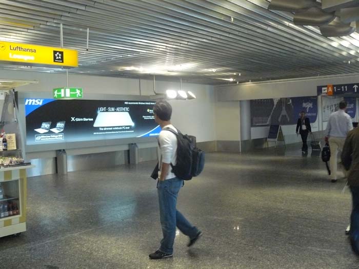 Como curiosidad y muestra del esfuerzo que MSI está haciendo por hacer que su marca y sus portátiles X Slim se hagan conocidos por todos, al caminar por la Terminal 1 de Frankfurt nos encontramos con esta pantalla publicitaria.