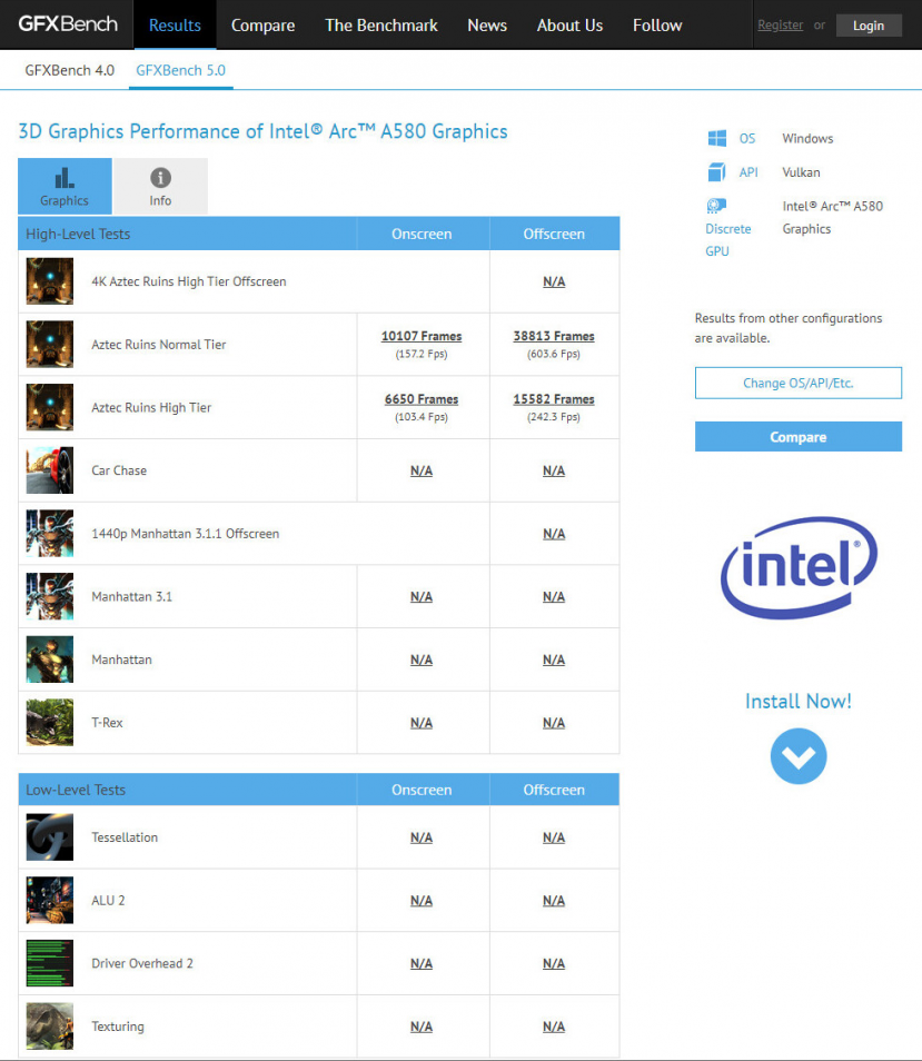 Geeknetic Una posible Intel Arc A580 aparece en la base de datos de GFXBench 1