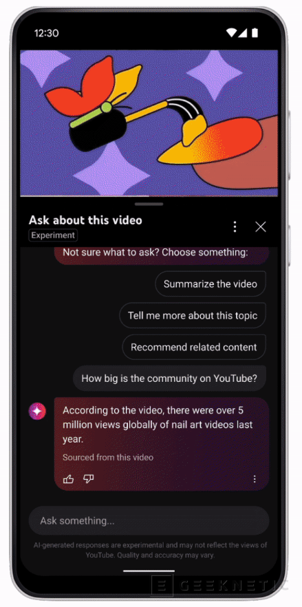 Según explica YouTube, las respuestas de la herramienta convencional se generarán mediante grandes modelos de lenguaje –el mismo tipo de modelos que dan vida a ChatGPT, por ejemplo— que se basan en información de YouTube y la web y están diseñados para ayudar a los espectadores a "sumergirse más profundamente" en el contenido que están viendo, de modo que los participantes podrán hacer preguntas sobre el vídeo que están viendo actualmente o solicitar ver otras cosas similares al vídeo mediante acciones como "recomendar contenido relacionado".