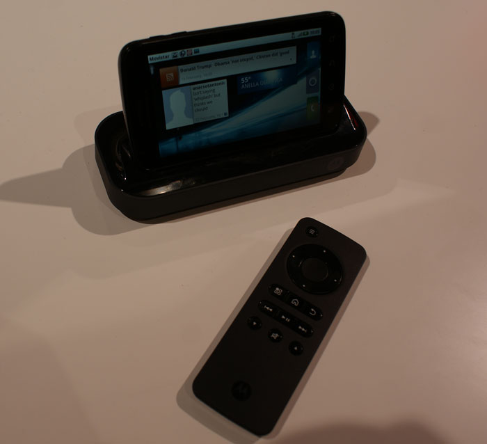 Además el HD Multimedia Dock puede usarse como media center conectándolo por HDMI a un televisor ya que incorpora un mando a distancia con el que podemos seleccionar y reproducir el contenido que tenemos en el Motorola ATRIX 4G.