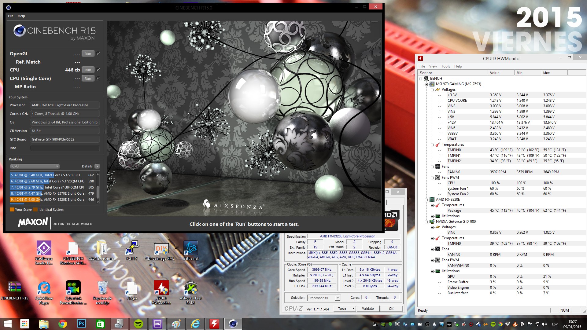 Los rendimientos de benchmarks no son espectaculares, podéis ver por ejemplo Cinebench, pero mantienen niveles muy equilibrados y, como no me cansaré de repetir, obtenemos un ordenador que difícilmente veremos saturado trabajando con muchas tareas de gran consumo de forma simultánea.