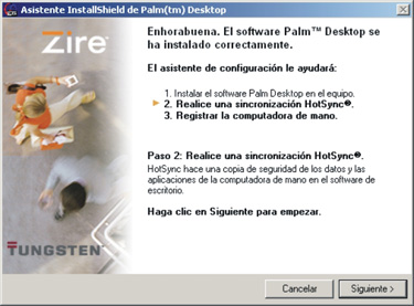 El primero de ellos esta descrito como “Instale el software Palm Desktop en el equipo”. En este punto se instalará la mayoría del software necesario y dirigirá a nuestro PC a reconocer el PDA.