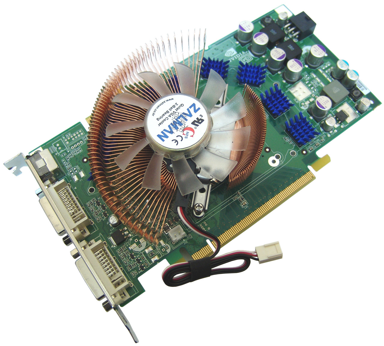 Mejorando la disipación y las temperaturas. A las velocidades marcadas notamos cierta falta de estabilidad, en forma de artefactos en pantalla, por lo que decidimos mejorar la disipación de la tarjeta con un económico y fiable Zalman VF700. Es un disipador de cobre para tarjetas graficas, totalmente compatible con este modelo, que trae consigo también pequeños disipadores de aluminio para las memorias. El único inconveniente de este disipador es que nos usara un slot PCI adicional, siendo esta tarjeta, de un solo slot.