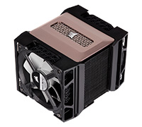 A cada lado, al exterior del disipador, encontramos dos ventiladores con sistema de movimiento por levitación magnética con un diámetro de 120mm y velocidades de rotación de hasta 2400rpm.