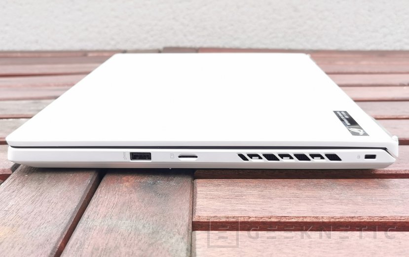 Tenemos bastantes posibilidades de conectividad, desde USB-C hasta lector de micro SD o WiFi 6, sin olvidarnos de un puerto RJ45 a pesar de su grosor contenido. Eso sí, en un portátil de más de 3.000 euros esperábamos conectividad 2,5 GbE o incluso más. Sigue pareciéndonos incomprensible que ASUS no integre una webcam en sus portátiles gaming, y más en un equipo que supera los 3.000 euros, algo que de seguro tendrán en cuenta los usuarios que busquen un portátil para varios usos más allá de los juegos, incluyendo tareas como teletrabajo o educación.