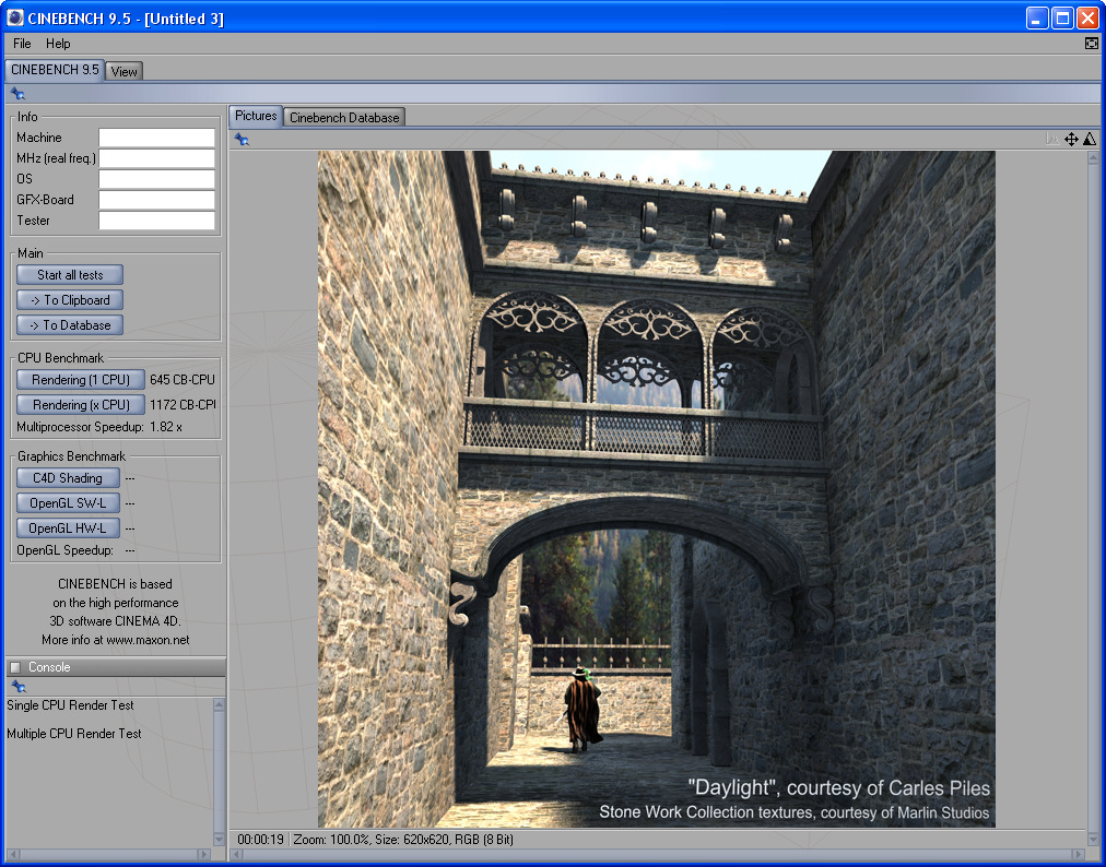 Un poco de Render y nuestra conclusión. Nuestra ultima prueba nos mostrará dos cosas, la mejora que supone usar un procesador de doble nucleo y la doble mejora que supone usar ese mismo procesador a mas del doble de su frecuencia de fabrica. Cinebench es un programa de render que nos ofrece una puntuación sobre la velocidad de renderizacion de una imagen predefinida. Es un test interesante porque usa un motor de render de una aplicación real. Podeis ampliar las imagenes pinchando en ellas para ver mas claro el resultado.