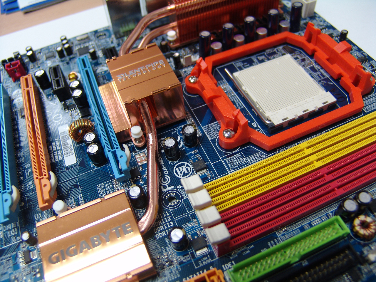 Entrando en materia la S5 de Gigabyte es una placa base de gama alta donde encontraremos las ultimas prestaciones, la mejor integración de un chipset 590 que hayamos visto y un sistema de disipación de ruido 0 basado en heatpipes y reforzado con disipación en la parte trasera de la placa por la zona del procesador. La calidad de la placa es evidente y resalta con solo verla. Está equipada con capacitadores sólidos para aumentar la durabilidad de la misma. Es una placa base pensada para sistemas SLI 16x en ambas tarjetas y con una opción a una tercera para los futuros sistemas de SLI + Física que Nvidia lleva tiempo prometiendo y que se supone que veremos en marcha en pocos meses. Como es lógico la placa soporta todo tipo de procesadores AMD de socket AM2, no importa el modelo o si es de doble núcleo o no, tiene capacidad para 16GB de memoria DDR2 con soporte oficial hasta 800MHz y una controladora integrada para RAID con niveles 0,1, 0+1 y 5. Estos son los pilares de una placa que detallaremos con la ayuda de capturas detalladas de la misma.