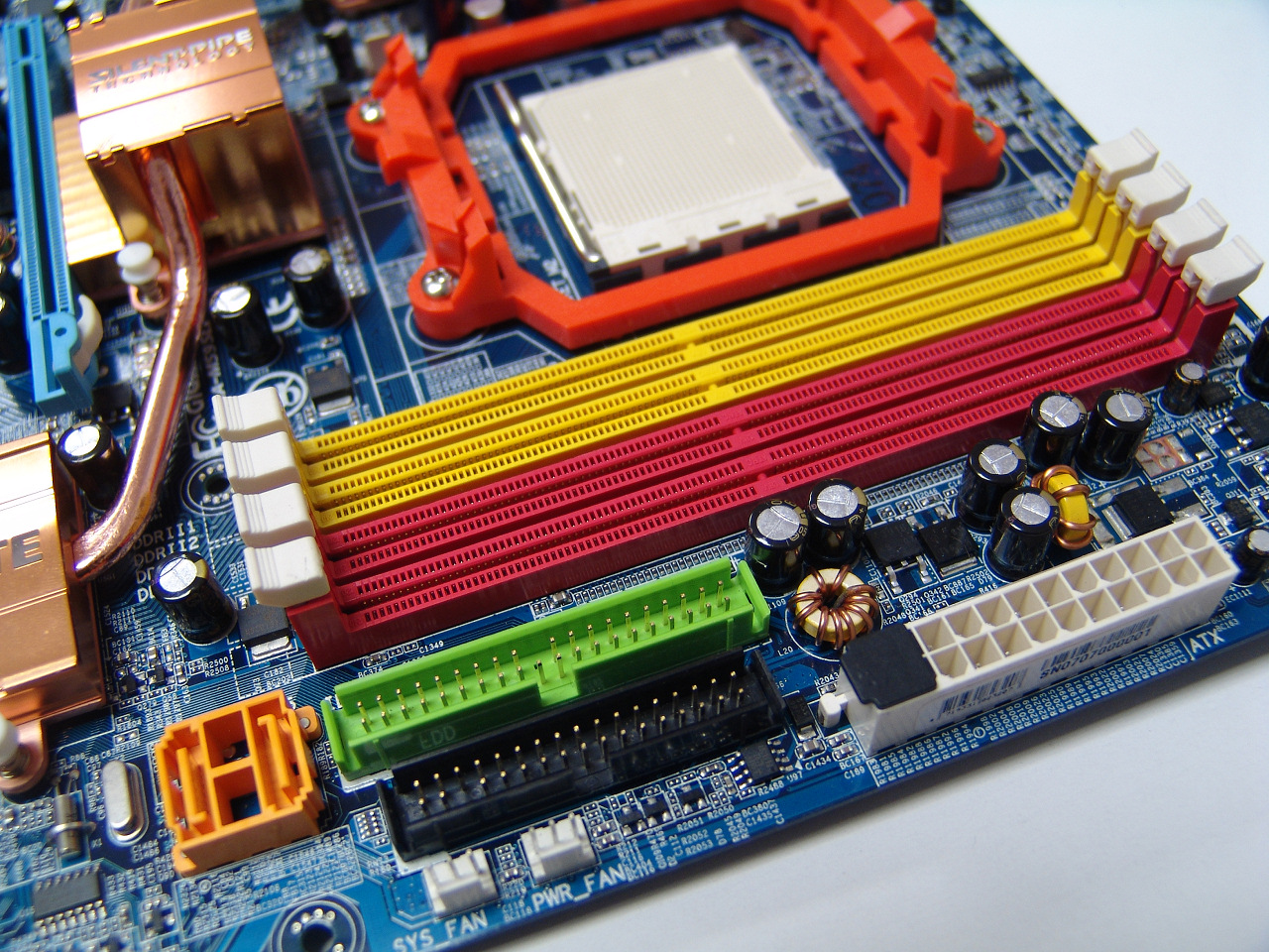 De slots de expansión no podemos estar mejor cubiertos. No solo por cantidad sino por situación también. Encontraremos dos PCI de 32bit en la parte inferior de la placa lo que nos da bastante libertad de movimientos para instalar tarjetas de sonido Creative o tarjetas de física de Ageia, por poner dos ejemplos "habituales". Encontraremos también dos PCI Express 1x que vienen de maravilla para instalar funcionalidad mas moderna o de cara un futuro cercano. Pero el plato fuerte son sus tres PCI Express gráficos, dos azules de 16x y uno ámbar de 8x que nos proporcionan capacidad SLI y SLI + Física. Los dos Azules están debidamente separados para hacer uso de tarjetas de doble slot y todavía nos dejan hueco para una tarjeta de menos potencia y un solo slot que podremos dedicar a tareas de cálculo de física para los juegos. La solución perfecta a nuestros sueños de 3D en el PC.