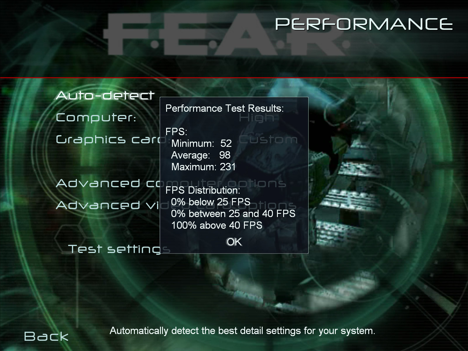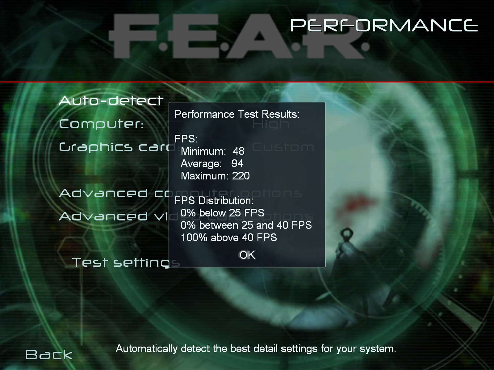 Ejecutando FEAR a máximo nivel de calidad y máxima resolución que admite el test de la demo encontramos que esta bestia se mantiene, con o sin overclocking, siempre por encima de los 40FPS que el juego considera como óptimos para jugar. Sus tasas mínimas son de 48FPS sin overclocking y de 52FPS con el overclocking. Son los mejores resultados que yo he visto jamás en esta prueba, normalmente un buen resultado es cuando no vemos tasas por debajo de los 25FPS pero a esta gráfica eso se le queda corto.