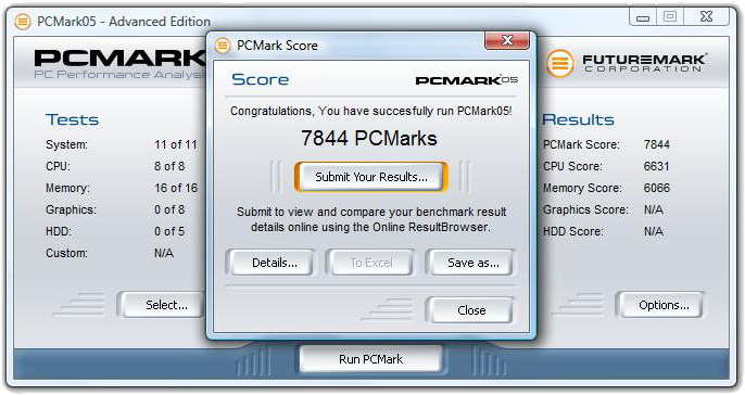 Ambos programas obtienen resultados interesantes, la tarjeta grafica de gama alta utilizada se aprovecha en buena medida por el buen desempeño del procesador. Las puntuaciones de PCMark 2005 son excelentes destacando el rendimiento de la memoria y del procesador. Con estas pruebas confirmamos que el 6000+ es un gran procesador, no el más rápido del mercado, tampoco es el más caro, es una buena solución para los que buscan rendimiento, posibilidades de ampliación a futuro y un buen precio. Es una pena que AMD no usara un proceso de 65nm para este procesador, una verdadera pena porque su consumo hubiera sido más ajustado y sin duda subiría mejor de frecuencias.