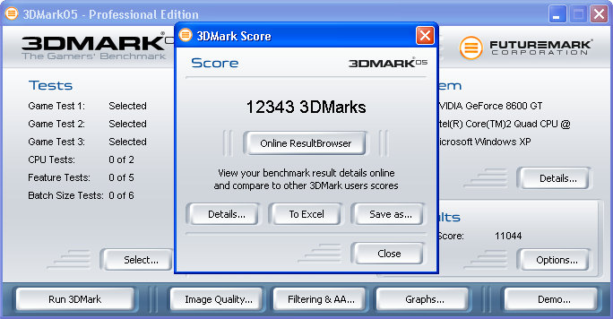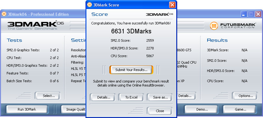 8600GTS. Resultado a frecuencia 675/2000MHzLas pruebas. 3DMark 2005 y 2006