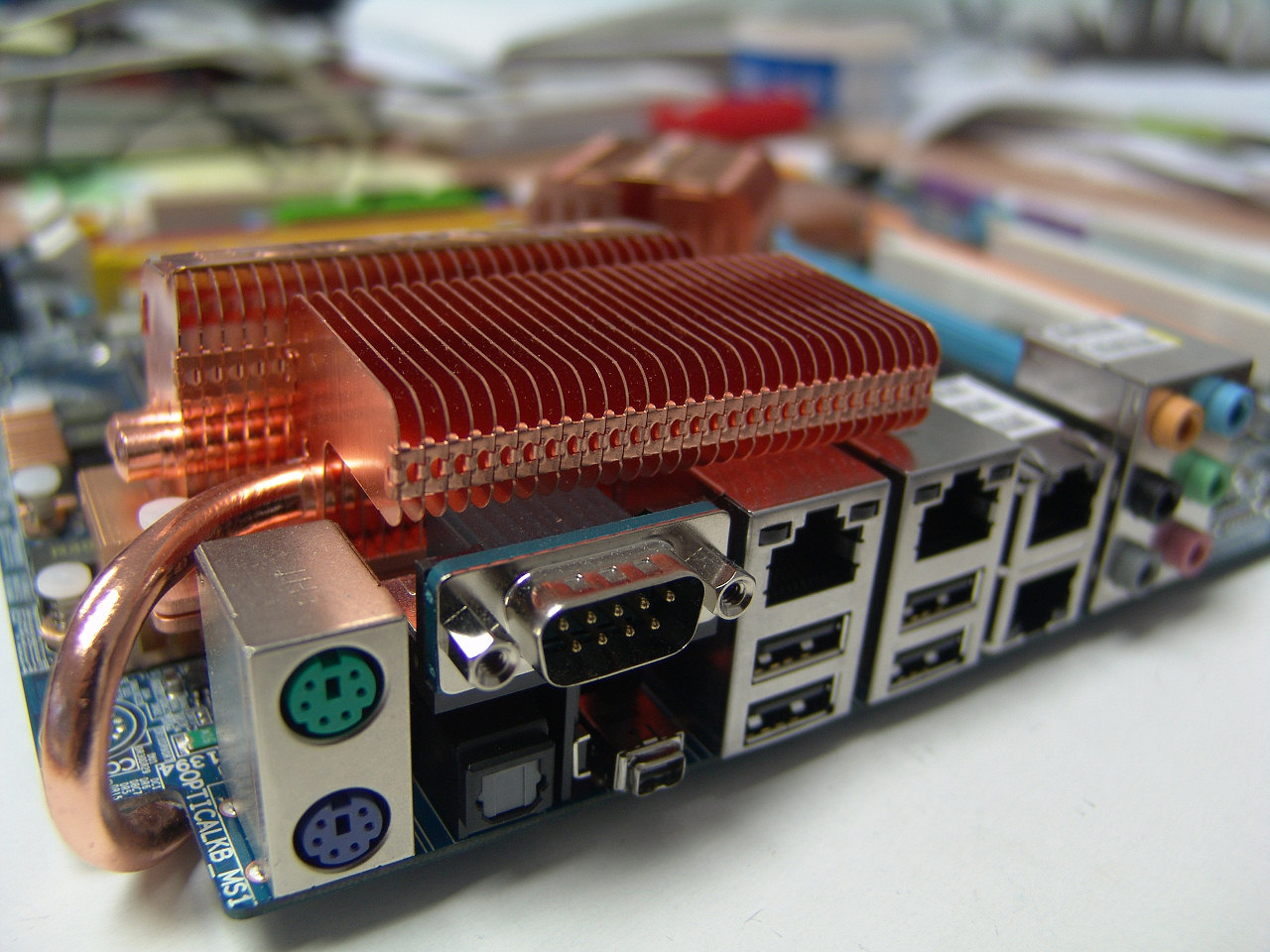 El disipador principal de todo el sistema de heatpipe amplía su superficie de disipación sobre los conectores posteriores de la placa base. De este modo se acerca la posición de disipación al ventilador posterior de la caja y por tanto se amplía o mejora la capacidad de refrigeración de toda la placa base. En el panel posterior de conexiones encontraremos un poco de todo: dos puertos PS2 para teclado y ratón, un puerto serie, conexiones de audio digital en forma de un SPDIF óptico, un Firewire de cuatro contactos o Mini-Firewire, cuatro puertos USB 2.0, cuatro tarjetas de red Gigabit y la tarjeta 7.1 que viene proporcionada por un DSP HD-Audio de 8 canales con Dolby Digital Live y DTS Connect. Una tarjeta de sonido muy interesante, como la de todas estas placas base de gama alta, que si no somos extremadamente exigentes bien nos puede hacer olvidar de utilizar una tarjeta de sonido dedicada.