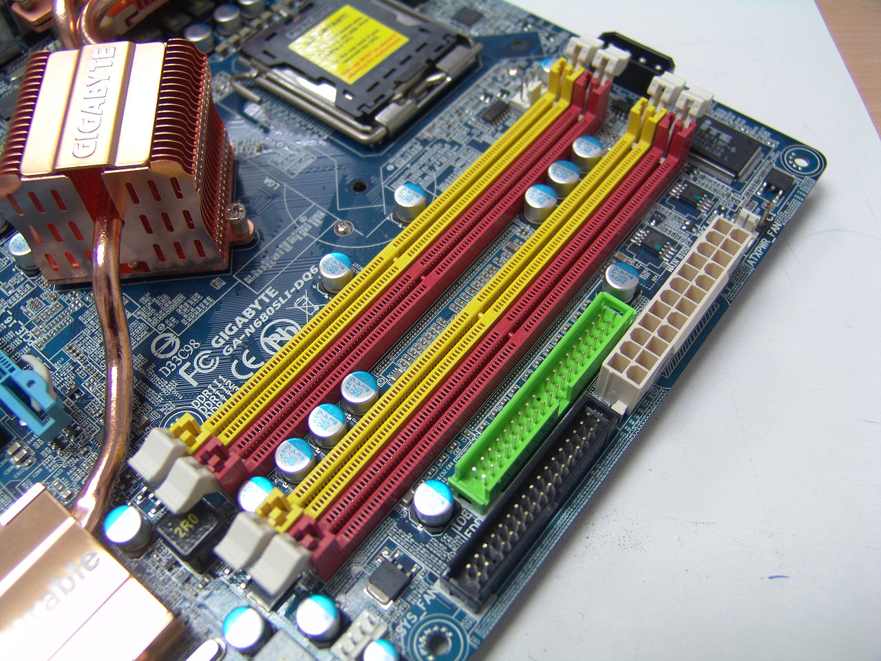 La distribución de los tres conectores PCI Express es como la de todas las placas 680i basadas en el modelo de referencia de Nvidia. Los dos principales están apartados entre sí por otros tres puertos y el secundario queda a mitad de camino entre ambos para dejar sitio a graficas con disipadores de "dos pisos". Echamos en falta también algún conector de ventilador mas no le habría venido nada mal a esta placa base. Sugerencias por si los chicos de Gigabyte nos leen.