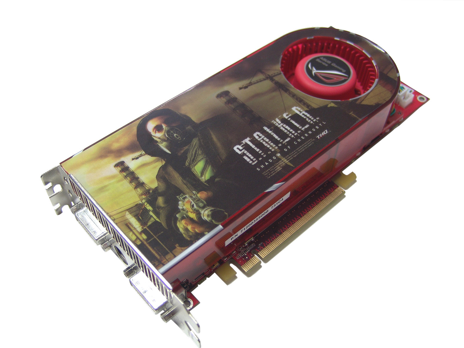 Esta es nuestra tarjeta de pruebas. Un interesante modelo de Asus que viene de serie con un juego tan actual y con tanto tirón como Stalker. La pena es que la pegatina que ha usado Asus para personalizar su modelo tapa las bellas llamas de la cubierta original de la 2900XT. Es una tarjeta no mucho más grande que una 8800GTS así que no tendréis mucho problema en instalarla en cualquier ordenador salvo algunos cubos y otro tipo de cajas pequeñas. Nosotros hemos notado que al utilizarla en juegos es bastante ruidosa, bastante más que una 8800GTS o GTX así que para los que tengáis el oído delicado esta tarjeta no es vuestra mejor opción.