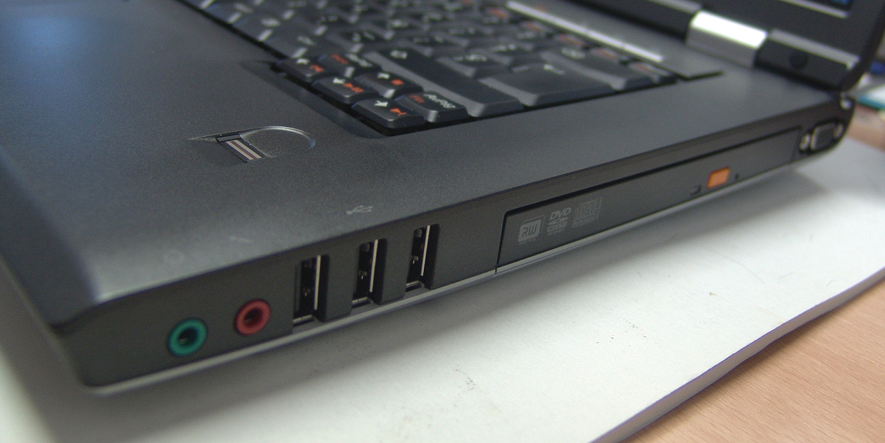 En el lado derecho de la máquina encontraremos el resto de conectores, los tres puertos USB 2.0 restantes, la toma de entrada de línea micrófono y la salida de auriculares. Es curioso que los puertos USB estén en vertical, lo que puede parecer raro, pero es sin duda otro toque de maestría y de cuidado de los detalles por parte de Lenovo. De este modo la separación entre los puertos es mayor a la convencional y nos permite que los dispositivos que instalemos estén más espaciados y no tengamos problemas para conectar todo tipo de elementos y además varios a la vez. Al final de este lateral encontraremos también la unidad óptica, que es una regrabadora de doble capa y el puerto VGA para conectar un monitor Externo.