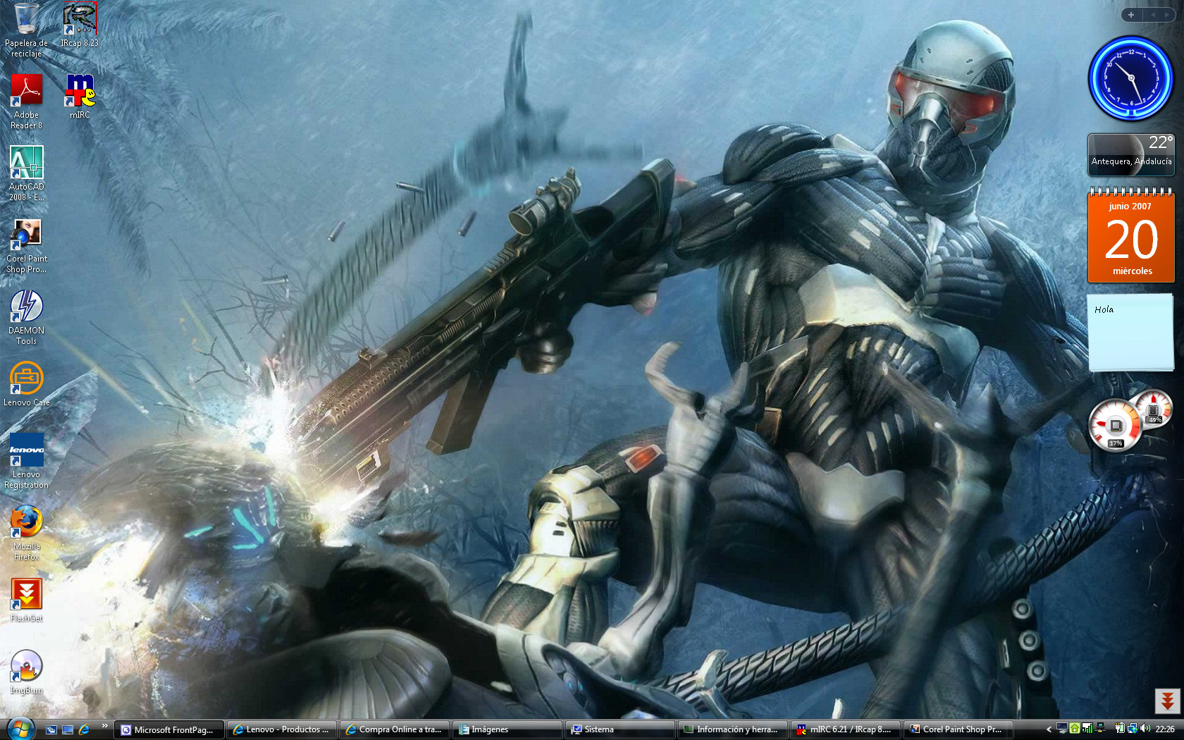 Conclusión El Santa Rosa incorpora novedades interesantes pero no es el salto que esperábamos todos. Habrá que esperar a que se actualice a finales de año con procesadores de 45nm para ver un verdadero cambio en la plataforma de Intel, también es un adelantado a su tiempo ya que una de sus principales prestaciones es la nueva conexión inalámbrica y a día de hoy los puntos de acceso generalizados son G y los N todavía son bastante caros y no se integran en soluciones con modem, ya sea adsl o cable, que es la solución más estandarizada en el segmento doméstico. Del Lenovo 3000 N200 me quedo con la pantalla, con esa impresionante pantalla que hace convierte a un modelo normal y corriente en algo fuera de lo común. También me quedo con su calidad de fabricación, con su paquete de software de seguridad y mantenimiento del PC, al que podríamos dedicar todo un artículo completo. La pena es que a los que nos gusta tener el sistema operativo lo mas minimalista posible, con las aplicaciones justas, tendremos que realizar un proceso de limpieza bastante intensivo. Os dejo con una captura de pantalla realizada a este PC. Un escritorio de dimensiones impresionantes para una pantalla de 15.4", equivale a tu pantalla de 20 o 22 pulgadas convencional.