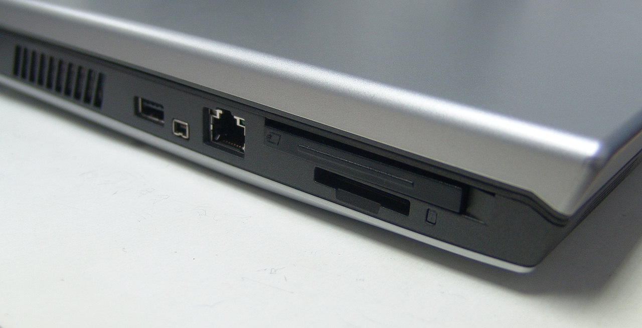 El perfil frontal del N200 es muy agresivo con una línea cortante que marca tanto el filo de la pantalla como de la base y de este modo oculta los altavoces y el botón de selección o de activación de las funciones inalámbricas. Solo se ve cortada por un segundo panel de leds donde podemos ver la actividad de las diferentes redes inalámbricas, de la carga de la batería y del estado del ordenador. Así podemos saber si nos lo hemos dejado suspendido sin tener que abrir la pantalla. Por su puesto, a su vez, la pantalla es activa así que basta un simple gesto como es abrir o cerrar el ordenador para que este pase a estado de suspensión o se vuelva a encender, como sabéis, esto se puede también configurar desde el sistema operativo ya que usa el sistema ACPI de gestión energética. A parte de este perfil tan bello en la imagen podemos ver otros detalles interesantes como es el slot ExpressCard tipo 54 y el lector de tarjetas 8 en 1. les acompañan las tomas de red Ethernet, el Firewire de tipo mini y un conector USB 2.0. Fijaros en los detalles de calidad que tanto el conector de red como el lector de tarjetas disponen de leds de actividad para que sepamos en todo momento si están funcionando correctamente.