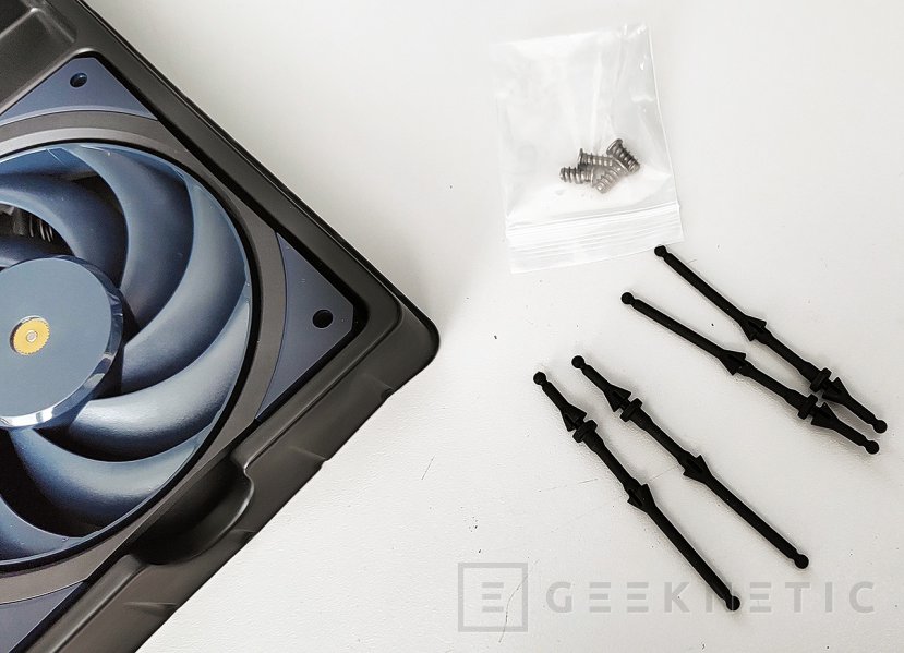 Entre sus prestaciones principales encontramos un motor capaz de desarrollar hasta 3200rpm con modo de parada completa por debajo de un rango de potencia del 5% PWM. Con esta velocidad máxima de rotación presume de unas prestaciones bastante sorprendentes con hasta 88CFM (150m3/h) de flujo de aire, propio de ventiladores más grandes, con una presión estática de hasta 4.75mm-H2O, y un ruido máximo, según el fabricante, de hasta 39.4dBA. En combinación es el ventilador de alto rendimiento, sobre el papel, más equilibrado de todos los ventiladores de alta frecuencia de rotación que hemos probado en los últimos meses.