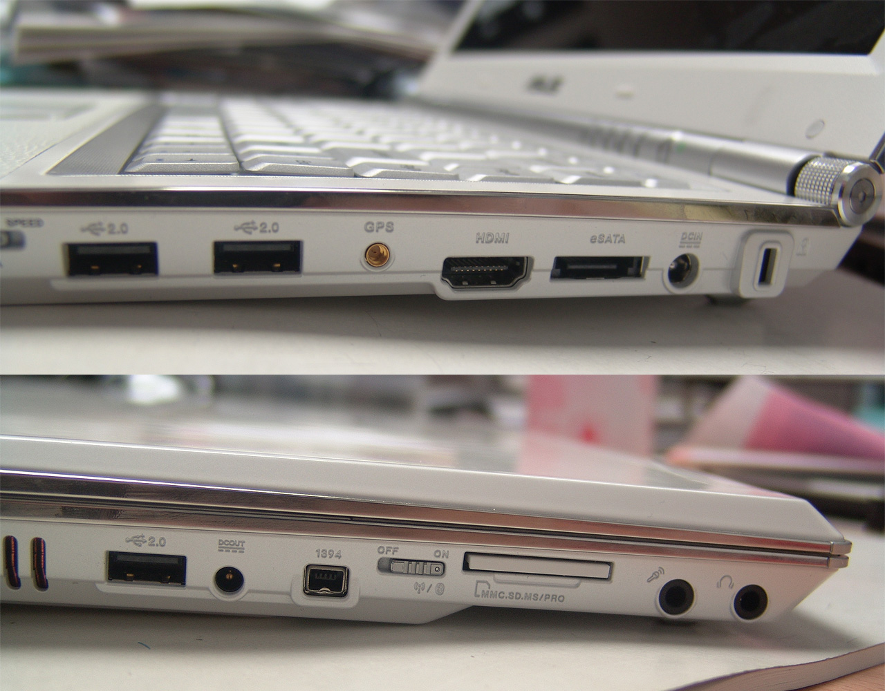 El U3S sabe mucho de conectividad. ¿Que podemos pedir a nivel de conectividad a un ordenador portátil?, ¿Qué tenga bastantes puertos USB, Firewire, Red gigabit, modem,….? Eso seria lo normal, el U3S integra tres puertos USB 2.0, un puerto Firewire y red gigabit y modem. Hasta aquí todo normal, quizás un slot ExpressCard 54 no nos venga nada mal, un slot de memorias 8 en 1 también es buena idea y como estamos por pedir porque no una salida Svideo para el televisor, una toma VGA para el monitor externo, como no las salidas y entradas de audio y porque no rizar el rizo añadiendo una conexión HDMI y una conexión E-Sata. Todo esto integra el U3S en su carcasa, además de la toma de antena para el GPS, lo que le convierte en una maquina de conectividad total.