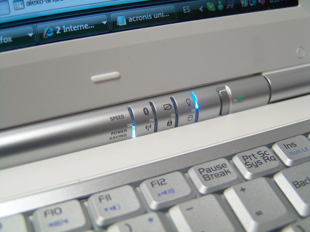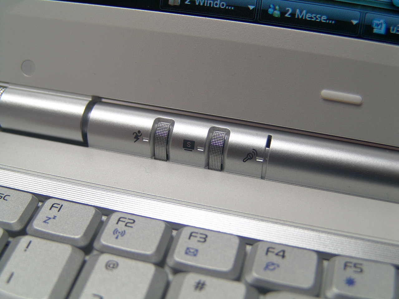 Lo cierto es que este portátil tiene dos tarjetas graficas que podemos elegir a placer siempre y cuando cambiemos con el ordenador apagado. Podemos cambiar con un switch en un lateral del mismo entre el ahorro de energía que consigue el 3100 de Intel, con memoria compartida, o elegir la potencia 3D del 8400GS de Nvidia con 128MB de memoria dedicada. El único requisito es cambiar con el ordenador apagado. Este selector lo habíamos visto antes en portátiles de Sony y Asus lo ha escogido como el medio ideal para cambiar de gráfica en este nuevo modelo de gama alta. Pero no es el único detalle espectacular de este modelo. A parte de su chipset Santa Rosa y su procesador de doble núcleo esta máquina equipa todo lo necesario para cualquier tipo de conectividad conocida actualmente en el PC. Empezamos por el bluetooth 2.0 + EDR, seguimos por el Wifi del tipo N con velocidades de 300 mbits y acabamos con un receptor GPS integrado en el aparato. El GPS viene con su propia antena externa y es un medio mas, que a mi por ejemplo no me sirve de nada, pero que para muchos profesionales será una noticia y una novedad muy importante a la hora de decidirse por este modelo.