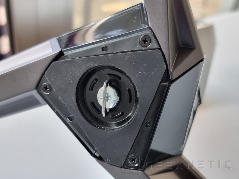 Este módulo cuenta con un diseño bastante llamativo con el logo de ROG formado por distinos microLEDs RGB que se camuflan con el fondo. Es compatible con sincronización Aura SYNC y también se puede personalizar manualmente desde el propio monitor.