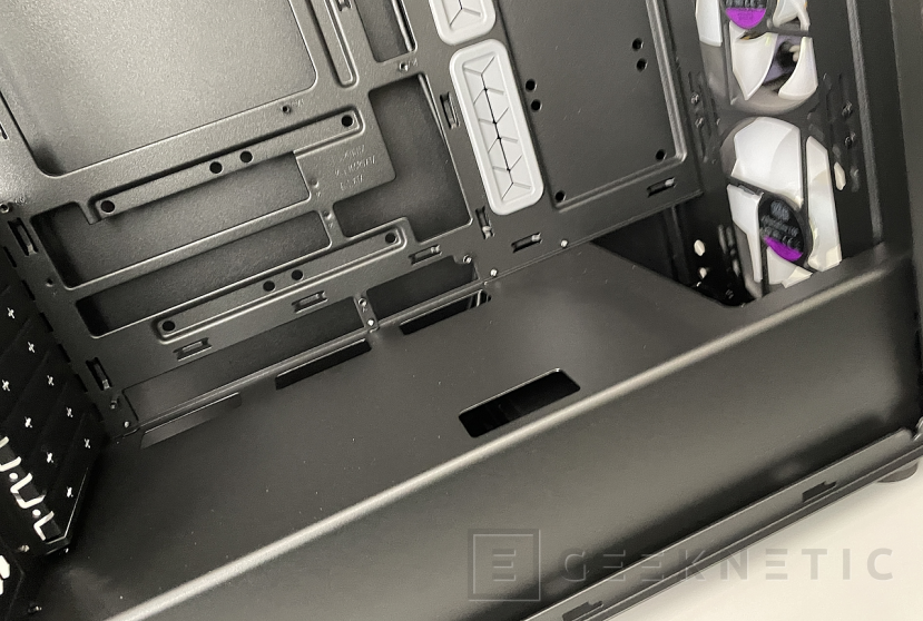 Por lo demás es una caja excelente para su precio, bien acabada, con buenos ventiladores, un aspecto muy cuidado y fácil de montar y mantener. Los ventiladores rinden muy bien ofreciendo un resultado excelente para componentes de nivel medio y alto. Nosotros hemos optado por refrigeración convencional para este montaje, con uno de los disipadores más grandes de Cooler Master y no hemos tenido problema alguno de montaje, todos los espacios son buenos para un montaje incluso con el disipador puesto en la placa base antes de montarla en la caja.