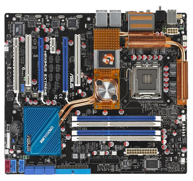 Prestaciones de la Maximus Xtreme. Como cualquier otra X38 del mercado la Maximus Extreme permite montar cualquier procesador de 45nm de Intel, los famosos Penryn, incluidos los que usaran bus a 400MHz reales ahora a principio de año. Como cualquier otra Intel está diseñada para soportar procesadores de cuatro núcleos en este caso basándose en el uso de memoria DDR3. Soporta hasta 8GB, en cuatro bancos, de este tipo de memoria con soporte oficial para módulos 1333MHz. También soporta Crossfire de ATI en modalidades PCI Express 2.0 con links a 16x para ambas tarjetas. Esto le permite ofrecer niveles de rendimiento grafico superiores a lo que nos tenían acostumbrados los chipsets 975X que solo podían linkar dos graficas a 8x de velocidad.