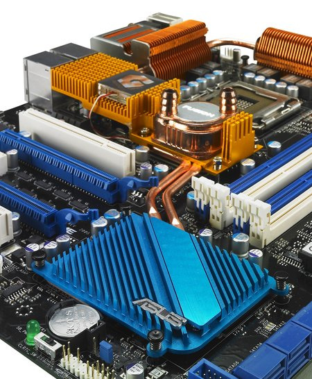 Elementos importantes de la placa. Este modelo de Asus está pensada sobretodo para overclocking pero no deja de lado las prestaciones más elementales que son, por otro lado, tan fundamentales en el funcionamiento del ordenador. La placa, como cualquier otra X38, monta un puente sur ICHR9 que le aporta hasta doce conectores USB 2.0 de los que Asus ha colocado 6 en la zona posterior de conectores y dejado otros 6 en conectores internos para que los usemos con otros componentes de la caja como conectores frontales, LCDs frontales, etc. Tambien nos proporciona 6 puertos SATA 2 con funciones RAID 0, 1, 0+1 y RAID 5. La controladora Intel permite la creación de raids independientes dentro de los mismos discos duros así que tenemos una libertad de creación de sistemas RAID muy elevada y de una eficiencia notable.