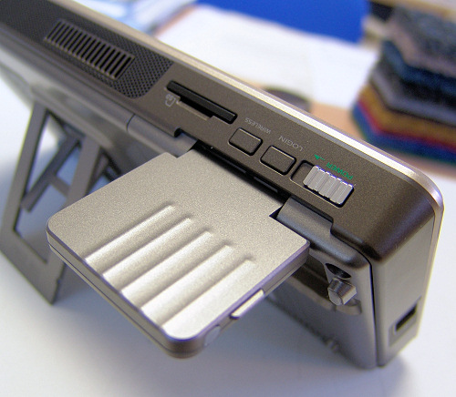 Lector de tarjetas SD, MS y botones de acceso directo a conexion Wireless, pantalla de Login y encendido/apagado.Con este impresionante conjunto de tecnologías Wireless no habrá manera de impedirnos estar comunicados el 100% del tiempo lo que supone una gran mejora para un concepto que pretende precisamente llegar a un sector del público que necesita un PC siempre conectado este donde este y vaya a donde vaya. Otro punto fuerte del nuevo R2E es su seguridad integrada. A parte del lector biométrico ya instalado en el modelo anterior el nuevo R2E integra de serie el modulo TMC de encriptación por hardware lo que añade muchos enteros en cuanto a la seguridad de los datos y al mantenimiento de la privacidad en caso de sustracción o perdida.