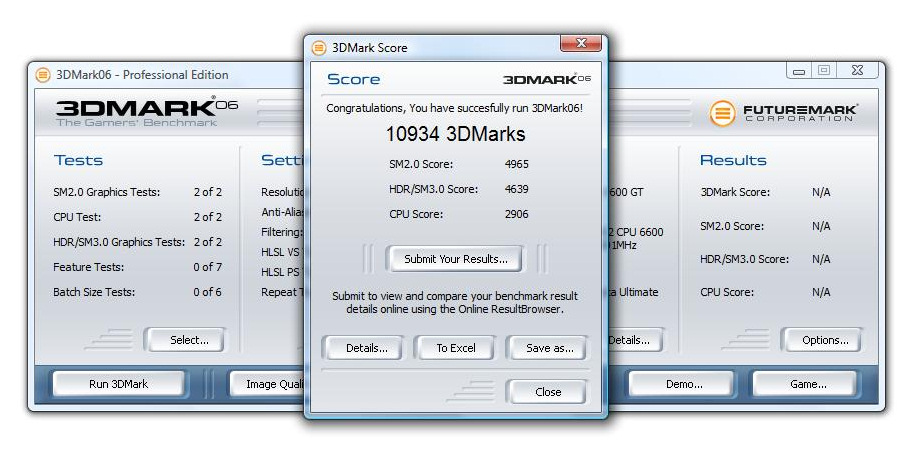 Si ampliais las imégenes podreis ver como los resultados son tan parejos que apenas los separan 100 puntos y sinceramente creo que es más una oscilación del rendimiento de la CPU que de la propia tarjeta gráfica. Lo que si se aprecia es que cada tarjeta tiene una especialidad muy definida, la ati le van un poco mejor las pruebas con Shader model 3 y a la 9600GT la parte con Shader Model 2. En cualquiera de los casos es un buen resultado lo que indica que la 9600GT es una tarjeta grafica muy apta para el publico que busque algo ajustado de precio pero con un rendimiento interesante.