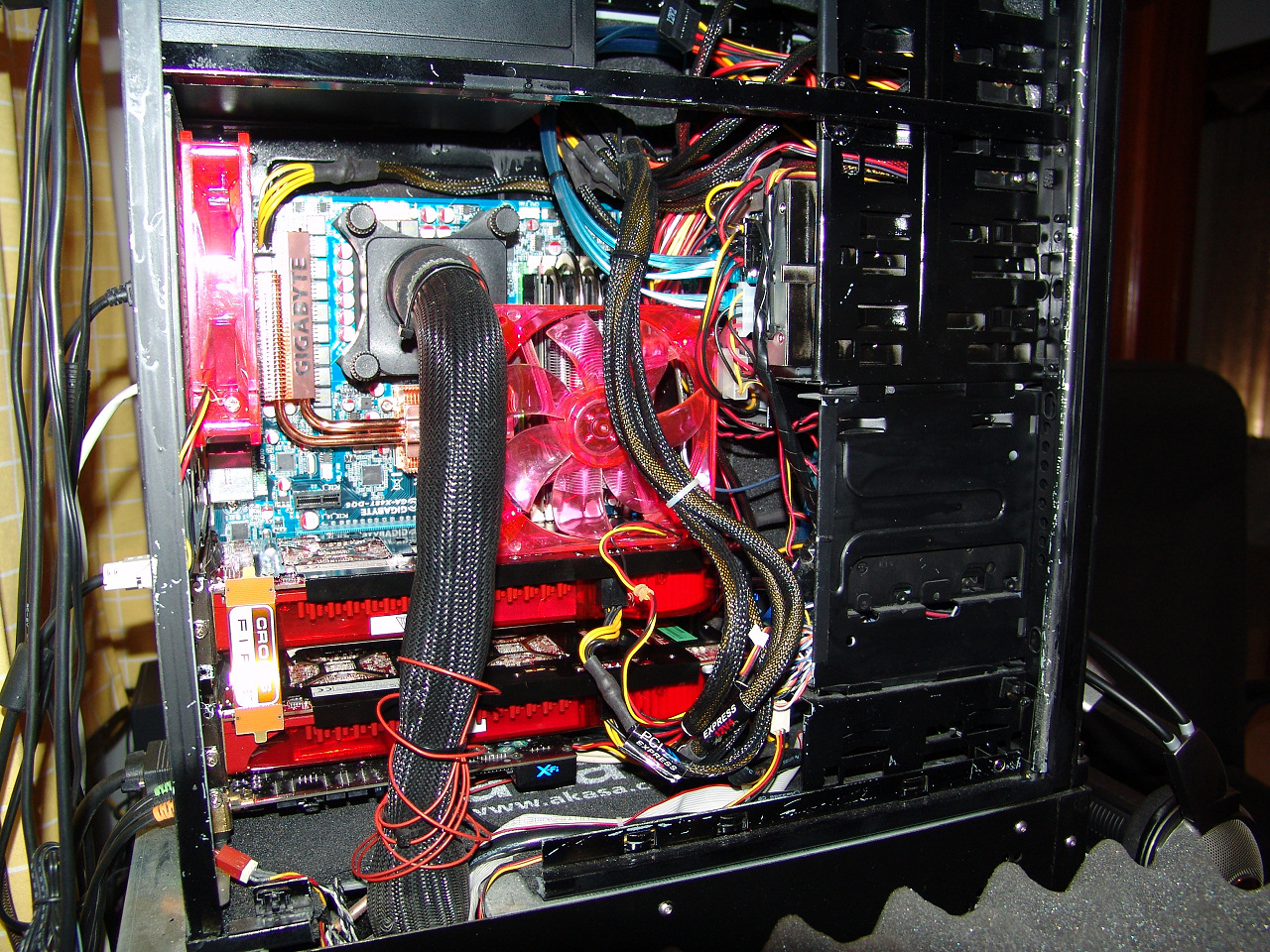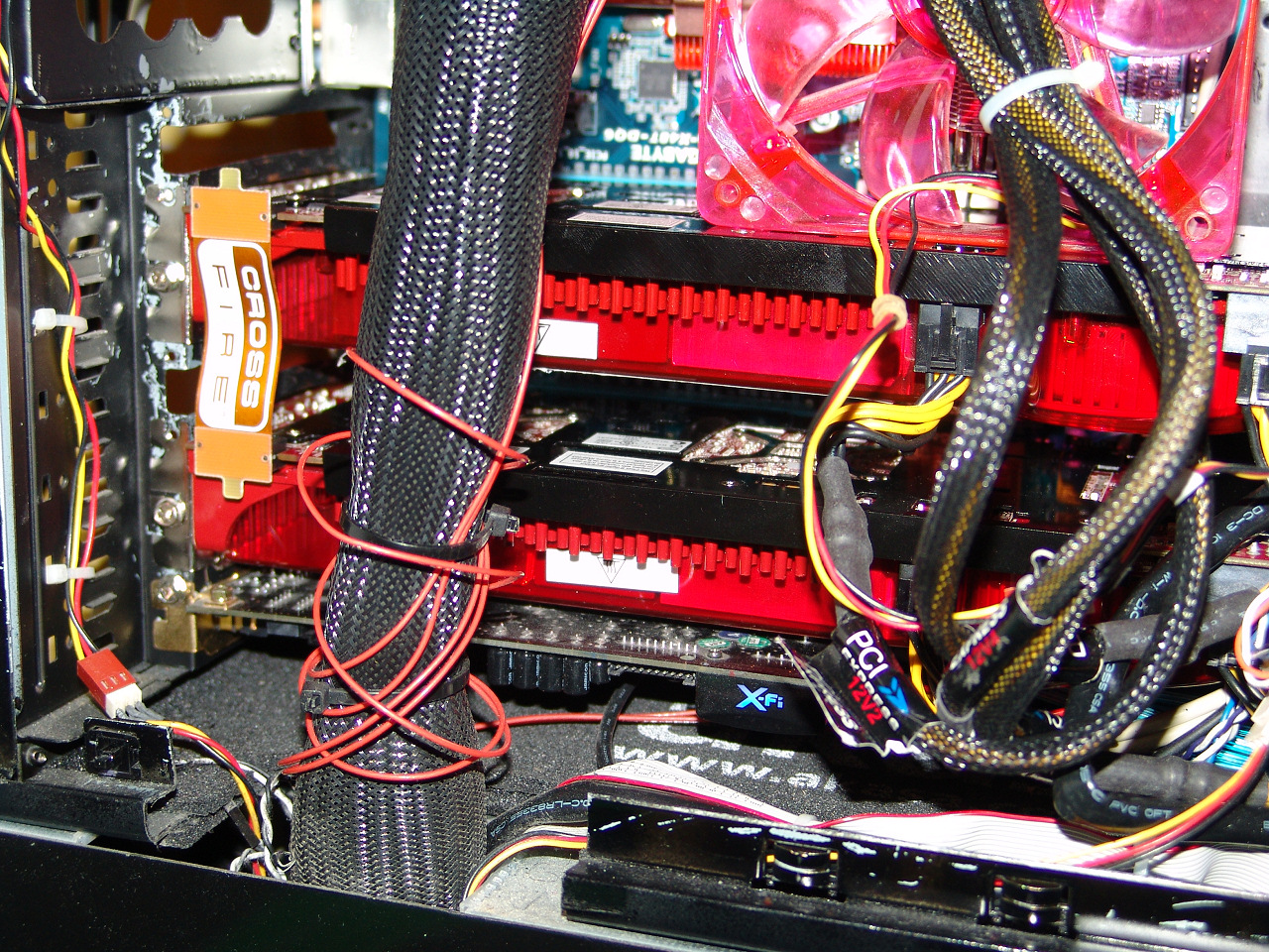 Detrás de todo este lío de cables encontramos dos 3870X2 y nuestra imprescindible XFI Elite Pro. El sistema gaming perfecto necesita también un procesador a la altura.