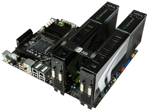 Dos conectores DVI y un HDMI conforman las salidas de esta tarjeta. Nos olvidamos de salidas analógicas.Esta gráfica consume aproximadamente unos 200W de potencia así que se recomienda una fuente de unos 550W para hacer funcionar una y de unos 750W para hacer funcionar dos en QuadSLI. Nosotros hemos comprobado el consumo real y con nuestra maquina de pruebas y en plena carga de dos de estas tarjetas el consumo real se elevaba a 550W. Hay que tener en cuenta que hablamos de un procesador de cuatro núcleos a una frecuencia de 4.2GHz y dos discos duros de 10krpm.
