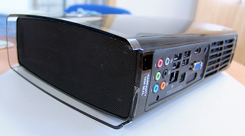 Disco convencional de 3.5" y unidad óptica de portátil.Las unidades de almacenamiento del Essentio nos hablan perfectamente esta combinación de dos mundos. Por un lado un disco de 3.5" SATA convencional, de 7200 vueltas y hasta 1TB, y por otro lado una unidad DVD-RW Slotin derivada de las que usamos en ordenadores portátiles. Habrá opción de Bluray para este ordenador pero desconocemos el coste añadido. Si os puedo asegurar que con la gráfica y el procesador incluido el soporte de Bluray esta más que garantizado sobretodo gracias al soporte por hardware de la tarjeta gráfica.
