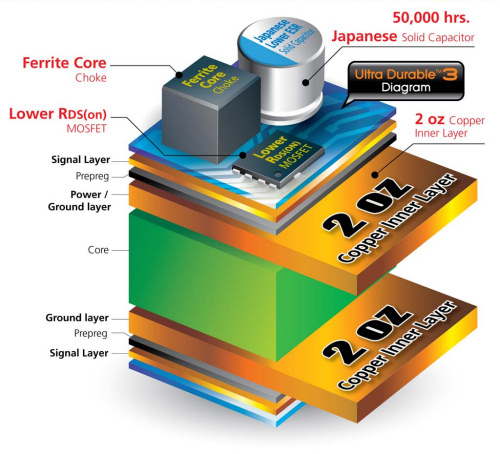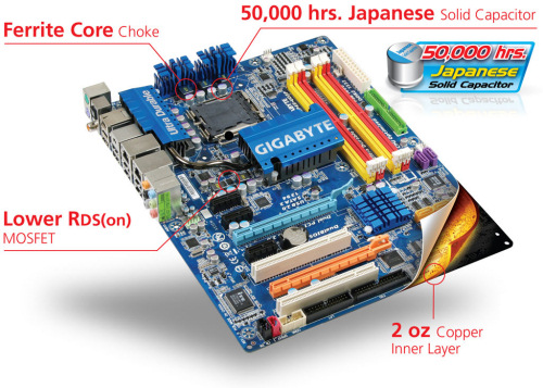 Introducción Gigabyte sigue sorprendiendo a propios y extraños con placas base cada día más perfeccionadas. Sus últimos modelos compiten se están convirtiendo en los preferidos por una buena parte de los usuarios gracias a su calidad contrastada, su capacidad de proceso y sus precios ajustados. Hoy os presentamos lo mejor de lo mejor en chipsets P45. Una placa base con la que se disfruta de las últimas tecnologías y la mayor capacidad de overclocking. Ultradurable 3. La nueva evolución de desarrollo de placas base ha llevado a Gigabyte a introducir nuevos cambios en el modo en que producen sus placas base de gama más alta. En esta nueva generación se mantienen elementos como los capacitadores solidos, las “chokes” con núcleo férrico,…y se introduce algo totalmente novedoso como es la duplicación de la cantidad de cobre que encontramos dentro de las diferentes capas que componen el PCB o circuito integrado.