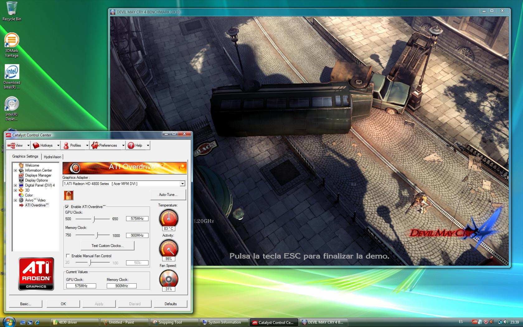 Geeknetic ATI Radeon 4830. La última pieza del rompecabezas 8 Temperatura de trabajo corriendo Devil May Cry 4.