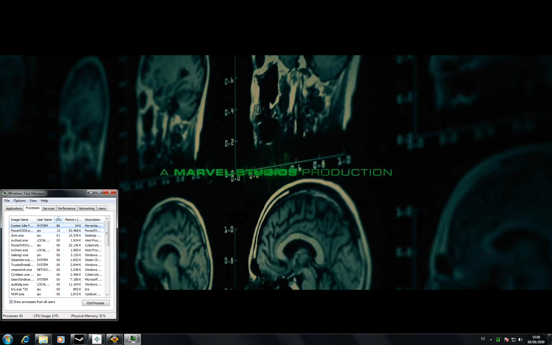 13% de consumo de CPU tirando de video 1080p en PowerDVD.
