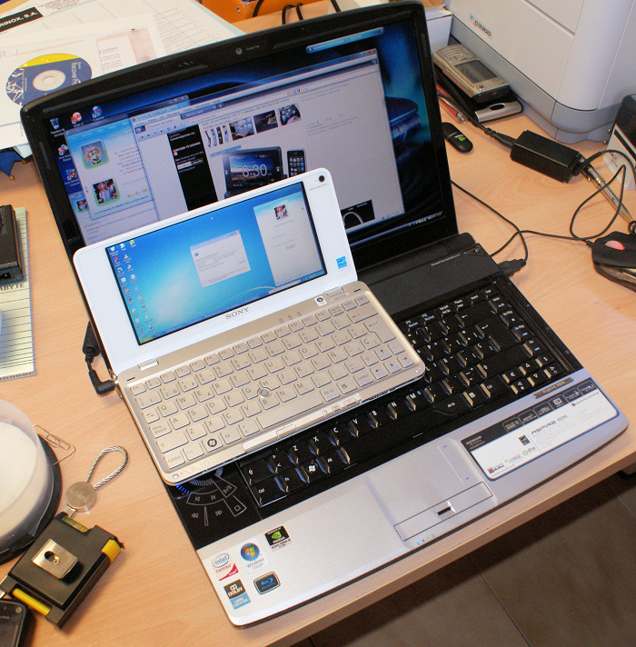 Impresionante la diferencia de tamaños entre el Vaio P y nuestro Acer Aspire 6920G.Por donde es difícil pasar es por aguantar con el sistema operativo Vista que trae de serie. El Vista Premium se le atraganta a este ordenador y hace parecer que realmente sea un ordenador con prestaciones mediocres y un precio desorbitado del que poco mas podremos sacar que navegar por la web y encima con lentitud. Sin embargo con Windows XP, e incluso con Windows 7, los resultados son muy diferentes. Con Windows 7 el comportamiento es bueno pero la falta de controladores maduros hace que la opción de Windows XP sea perfecta. Este es un ordenador para Windows XP pero por burocracias de Microsoft no tiene más opción, al menos en Europa, que montar Windows Vista. La ventaja es que, aunque Sony no nos da opción a “downgradear”, si que nos proporciona un buen paquete de controladores para que disfrutemos del 90% de sus prestaciones originales, solo echando de menos, el soporte para el receptor GPS que anda desaparecido, por ahora, para este sistema operativo. Aun sin GPS la opción de Windows XP hace de este ordenador un aparato mucho más eficiente, más capacitado y sobretodo mucho más rápido.