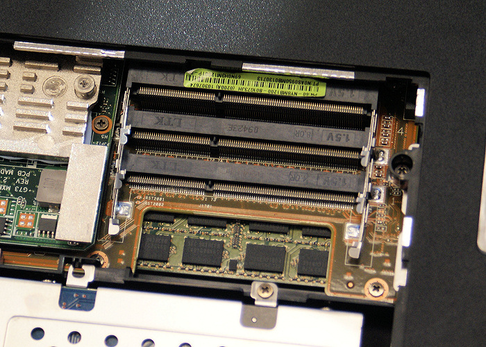 Todo el sistema se monta sobre un chipset HM55 de Intel, que dispone de un único chip, y que permite dar el soporte adecuado a las amplias tecnologías de que dispone este aparato. Una de sus prestaciones más curiosas, que nunca habíamos visto hasta ahora, es la de situar hasta cuatro bancos de memoria DDR3 con el que alcanzar grandes cifras de memoria RAM de una forma mucho mas económica. De hecho esta variante monta 8GB de RAM en módulos de 2GB que son mucho más económicos que hacerlo en módulos de 4GB como es habitual en otros modelos. Los módulos DDR3 de 2GB, aunque ahora están caros, son hasta 4 veces más baratos que un modulo de 4GB por lo que el ahorro es notable.