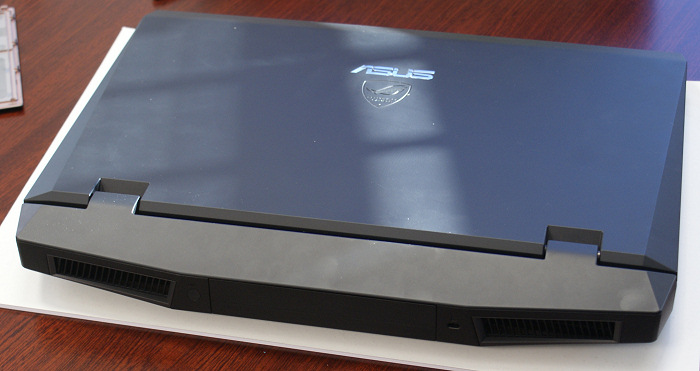 Es evidente que el G73 no está fabricado en el material de un fuselaje de un bombardero de decenas de millones de dólares pero sí que le copia ese color y esa simplicidad de formas. Lo que más choca del G73 es que un portátil ancho y largo donde la pantalla solo ocupa parte del cuerpo completo del aparato. De hecho la bisagra de apertura queda bien disimulada en la parte trasera del aparato que se utiliza, sobretodo, a modo de toberas de expulsión de aire sobredimensionadas para permitir una refrigeración más silenciosa y eficiente.