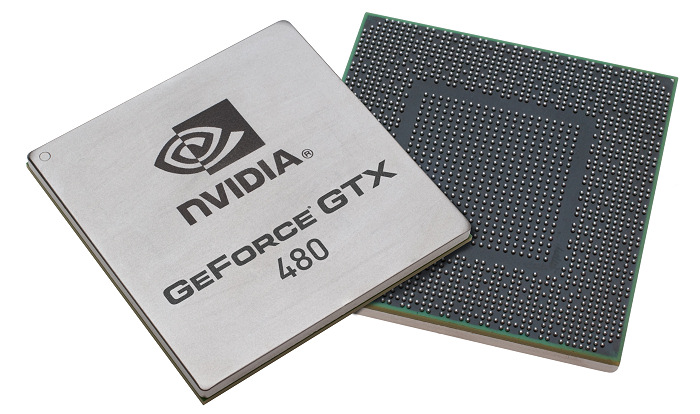El modelo de gama más alta será el GTX 480, con 1536MB de memoria GDDR5 a 3700MHz QDR y un bus de datos de 384-Bit, cuenta con una frecuencia de trabajo de 700MHz para la GPU y de 1401MHz para sus 480 unidades de shaders ahora llamados “núcleos”. Todos ellos tienen una potencia de calculo de 168 Gigaflops en doble precisión y algo mas de 1300 en precisión simple. Tiene una longitud de 27cm y dispone de un sistema de disipación de doble slot con turbina posterior y rejilla de expulsión anterior. El sistema de refrigeración utiliza cuatro heatpipes y es capaz de controlar los 250W de consumo de esta tarjeta de forma progresiva para no producir ruido en los momentos de reposo de la tarjeta. Estos chips soportan además temperaturas de trabajo de hasta 105 grados antes de iniciar sus procesos de autoprotección como el Throttling o apagado.