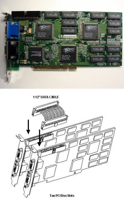 La Voodoo 2 fue la primera grafica 3D con capacidad para trabajar en paralelo con una tarjeta gemela.Soluciones de dos, tres y cuatro vías