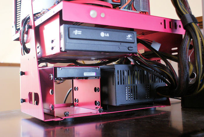 Las desventajas de este formato es que nos ocupara más espacio en la mesa, tendremos menos orden de cableado, aunque en este modelo se buscan soluciones bastante inteligentes, y sobretodo acumularemos más suciedad que en una caja con los filtros adecuados. Por supuesto corremos más riesgos de que algo caiga y dañe los componentes o de que alguien manipule donde no debe y como no el ruido queda directamente expuesto al usuario donde no hay pantallas de protección, como son las paredes de una caja convencional.