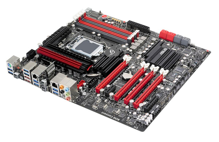 Maximus IV Extreme. Características. Esta nueva placa base de la gama ROG será todo un portento conectivo tanto a nivel de tarjetas de ampliación como conectividad de periféricos y también interactividad con diferentes plataformas como el teléfono móvil, un netbook, Tablet, etc. Es una placa de grandes dimensiones, supera el estándar ATX normal, y es por tanto una placa base espaciosa con un montón de prestaciones e integración masiva de componentes que le permiten, por ejemplo, disponer de 10 puertos USB 3.0 entre externos e internos. Esta placa está diseñada para ofrecer un buen aporte de refrigeración y energía a todos los componentes incluidos procesador, memorias, tarjetas gráficas y slots de ampliación. De hecho monta cuatro slots PEG con capacidad para trabajar con hasta tres tarjetas en SLI y un máximo de cuatro GPUs tanto AMD como Nvidia.